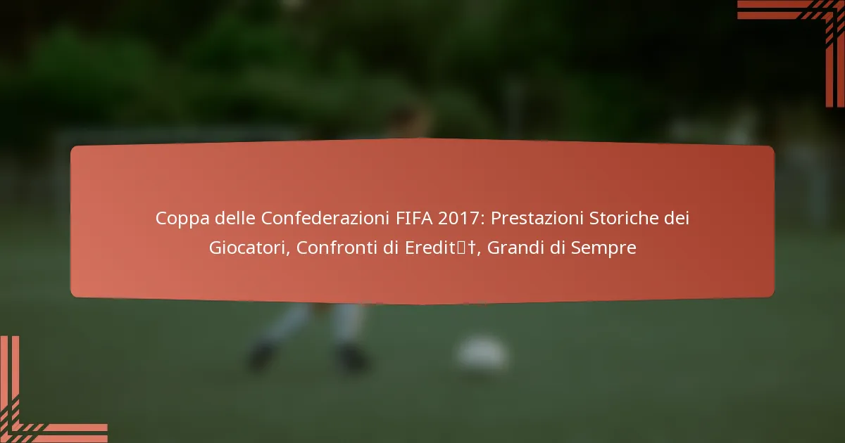 La Coppa delle Confederazioni FIFA 2017 è stata un torneo fondamentale che ha messo in evidenza prestazioni straordinarie dei giocatori, plasmando gli esiti e le narrazioni delle partite. Questa edizione non solo ha mostrato il genio individuale, ma ha anche segnato un’evoluzione significativa nell’eredità del torneo, riflettendo lo spirito competitivo del calcio internazionale. I contributi dei grandi di sempre durante questo evento hanno lasciato un’impronta indelebile nella storia della competizione.