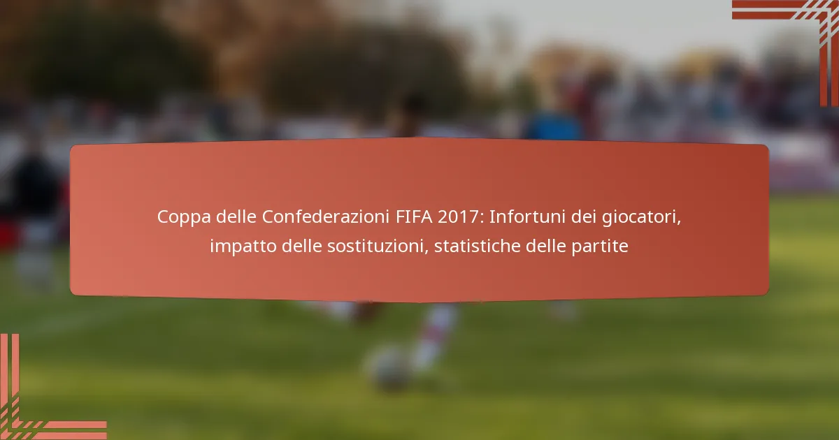 La Coppa delle Confederazioni FIFA 2017 è stata segnata da infortuni significativi ai giocatori che hanno influenzato le dinamiche e le strategie delle squadre, con stiramenti muscolari e problemi ai legamenti che hanno costretto a rimanere ai margini atleti chiave. Inoltre, le sostituzioni strategiche sono diventate fondamentali nel plasmare i risultati delle partite, poiché gli allenatori si sono adattati agli infortuni e alle tattiche degli avversari. Il torneo ha anche presentato una ricchezza di statistiche sulle partite, inclusi i gol segnati e le percentuali di possesso, che hanno sottolineato le prestazioni di squadre e giocatori.
