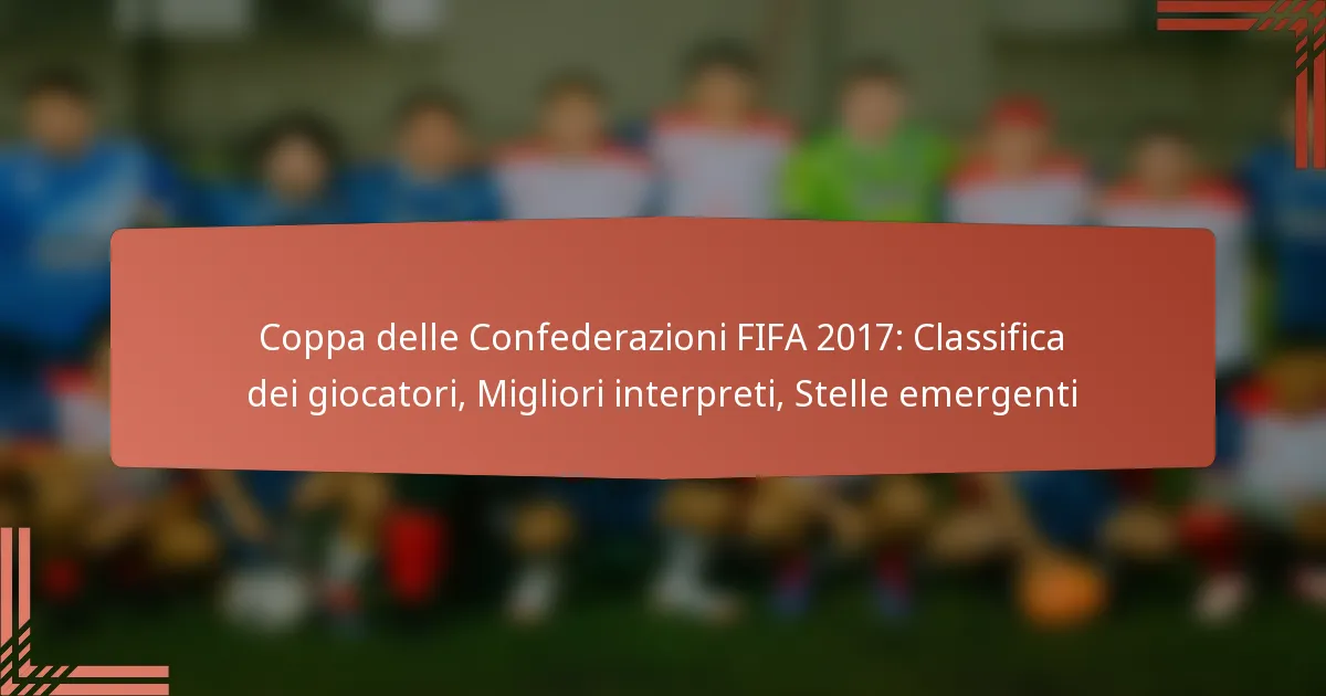 La Coppa delle Confederazioni FIFA 2017 ha messo in evidenza talenti eccezionali, con le classifiche dei giocatori che riflettevano le prestazioni individuali attraverso metriche chiave come gol, assist e contributi difensivi. Giocatori di spicco sono emersi come i migliori performer, fornendo statistiche impressionanti e giocate cruciali in partite decisive. Inoltre, il torneo ha introdotto stelle emergenti che hanno elevato i loro profili sulla scena internazionale, mostrando le loro abilità e superando le aspettative.